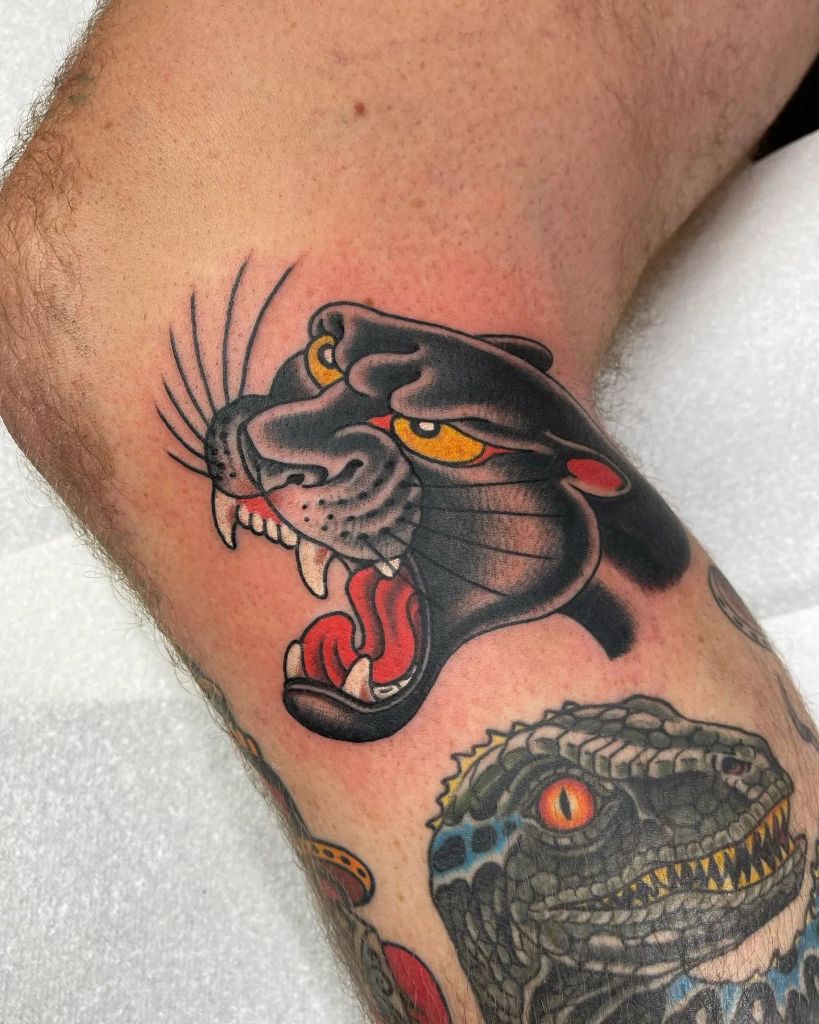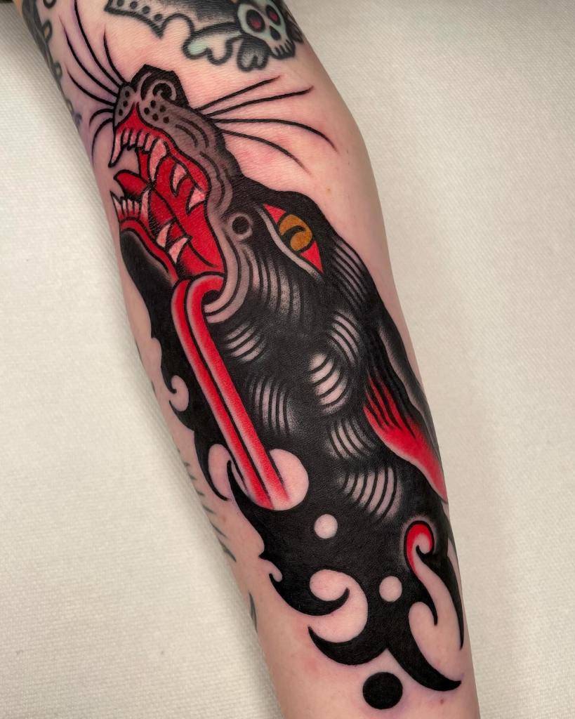 New Traditional Tattoo: New Traditional tattoo style blends classic tattoo elements with modern techniques. It retains the bold lines and vibrant colors of traditional tattoos but incorporates contemporary design elements, creating a fusion of the old and the new. This style often features detailed illustrations, bringing a fresh perspective to traditional themes such as anchors, roses, and animals.