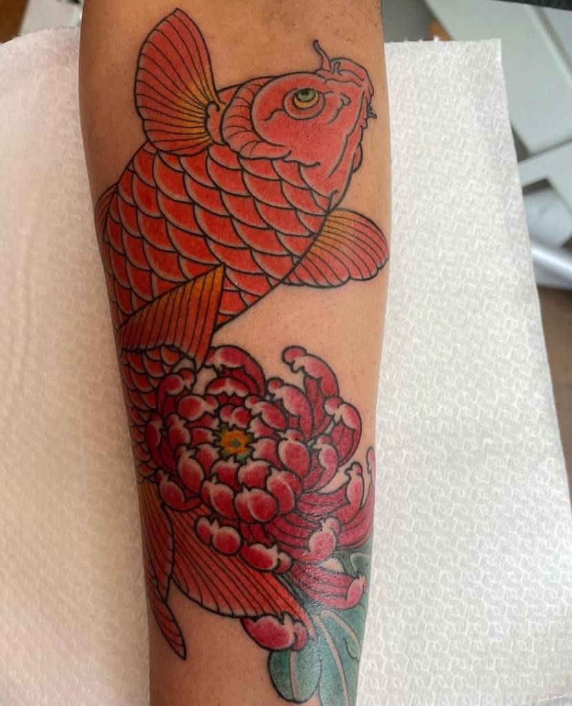 - Consider the Size: Traditional koi tattoos often involve intricate details, so larger placements are ideal for showcasing the design.